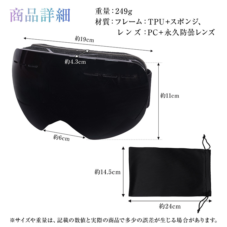 ・材質:TPU・スポンジ・PC・永久防曇レンズ