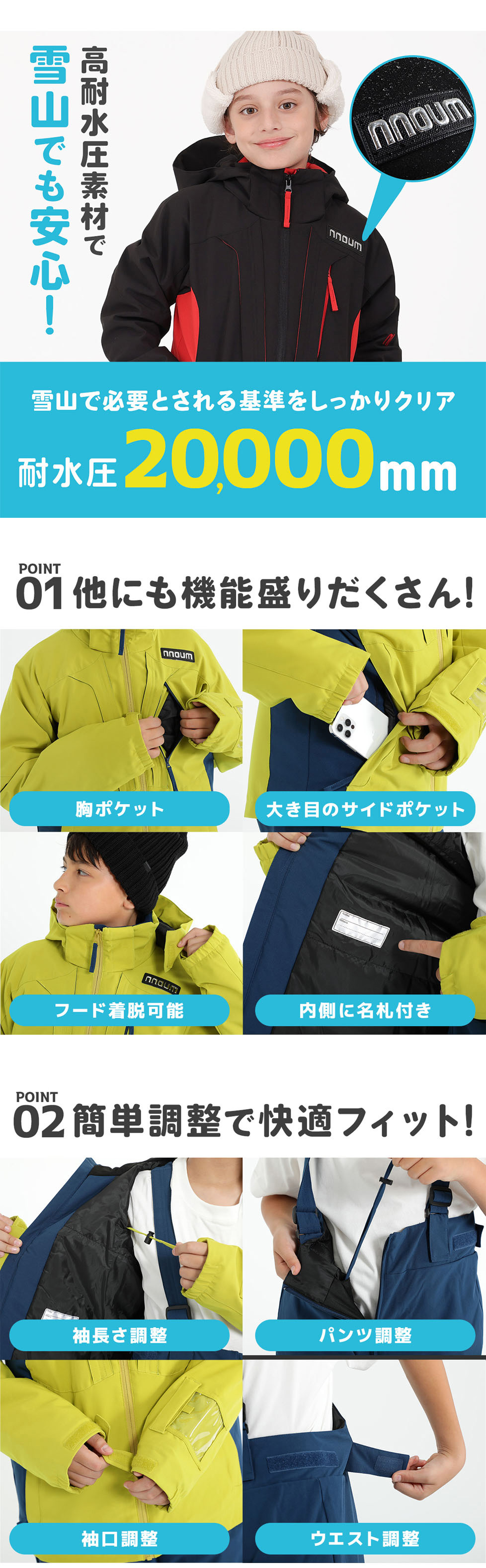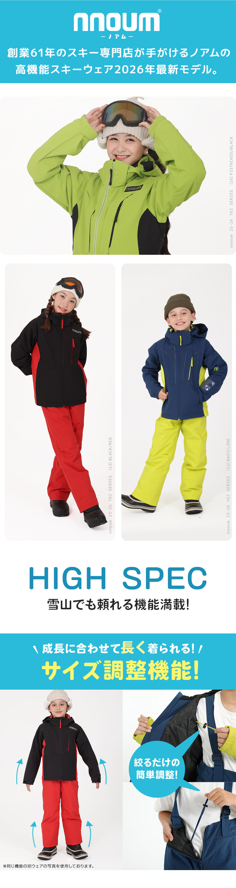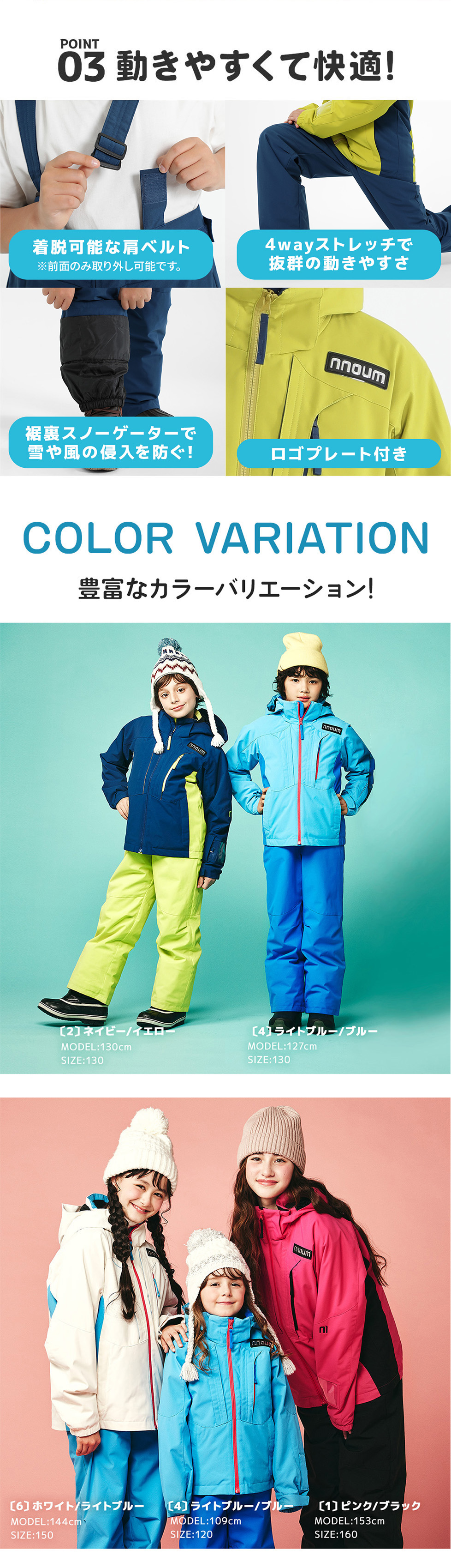 スキーウェア キッズ ジュニア 上下セット NNOUM ノアム 子供 男の子 女の子 サイズ調節可能 120 130 140 150 160 70J -20cmまでサイズ調整可能