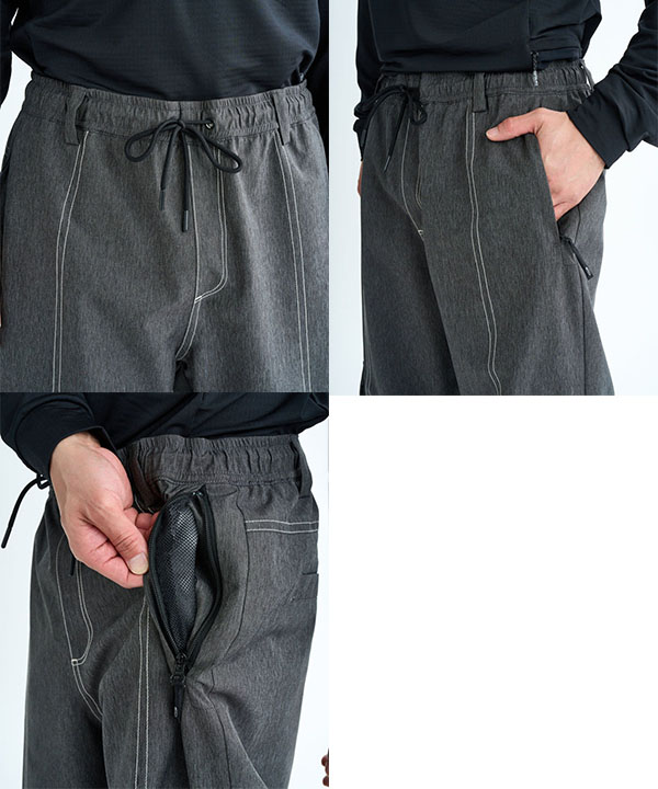 ウエストは、ドローコードでサイズ調整可能なゴム仕様で、フィットも着用感もリラックス。