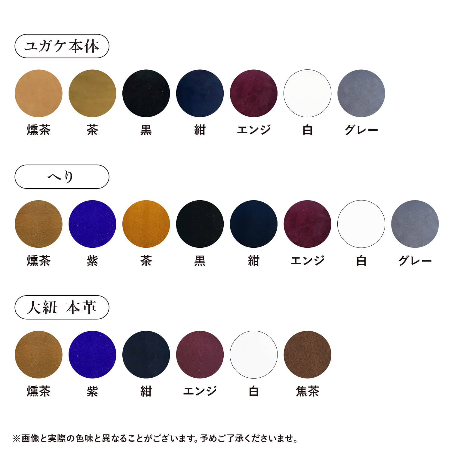 ・標準カラー(追加料金なし):紫、紺、エンジ、白、焦茶