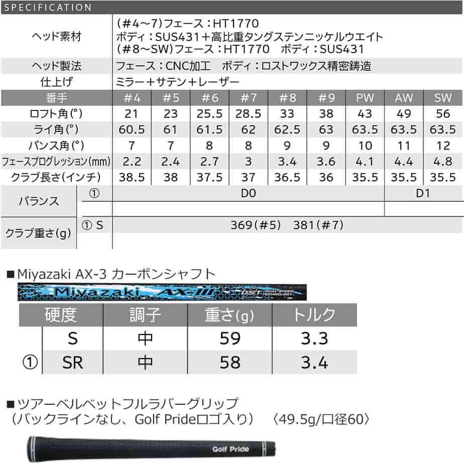 ※クラブ重さは、変更になる場合があります。