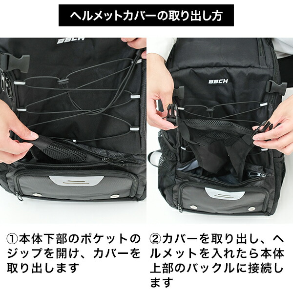 ■前面メッシュホルダー&バンジーコードでヘルメットや汚れた衣類等をしっかり固定