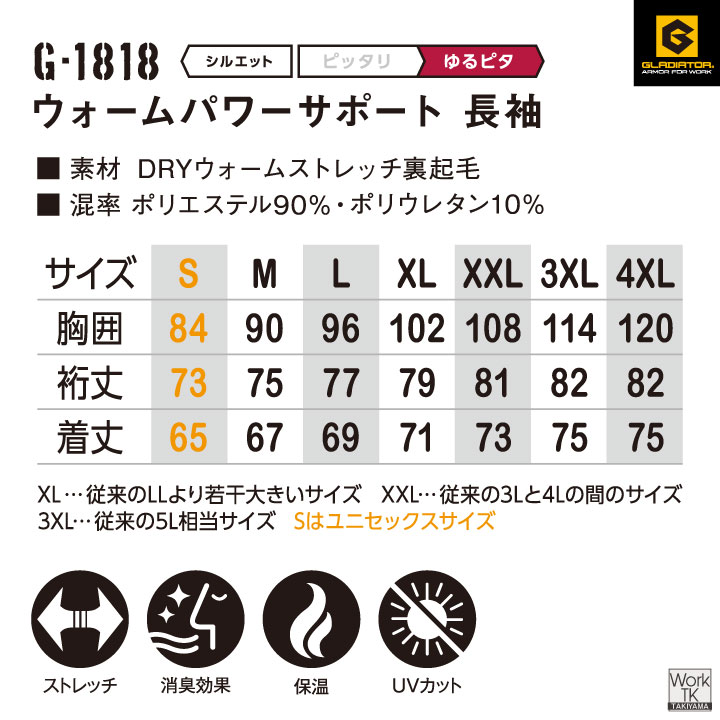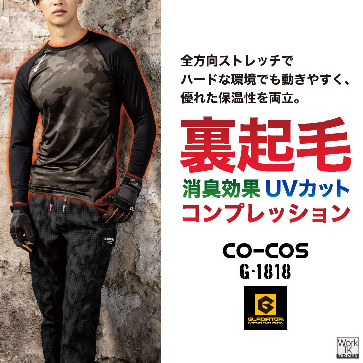 GLADIATOR G-1818 コーコスだからできる夏のG-818に続き、圧倒的な高コスパを実現!! ハードな環境でも動きやすく、保温性に優れた裏起毛ストレッチインナー ・モニターにより実際の色と多少ちがって見えることがあります。人気商品のため、商品在庫が欠品することがあります。