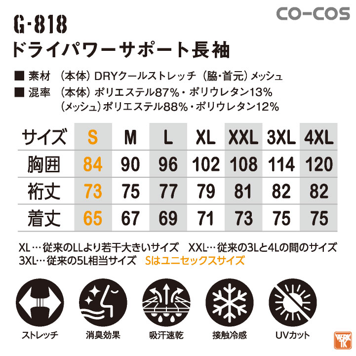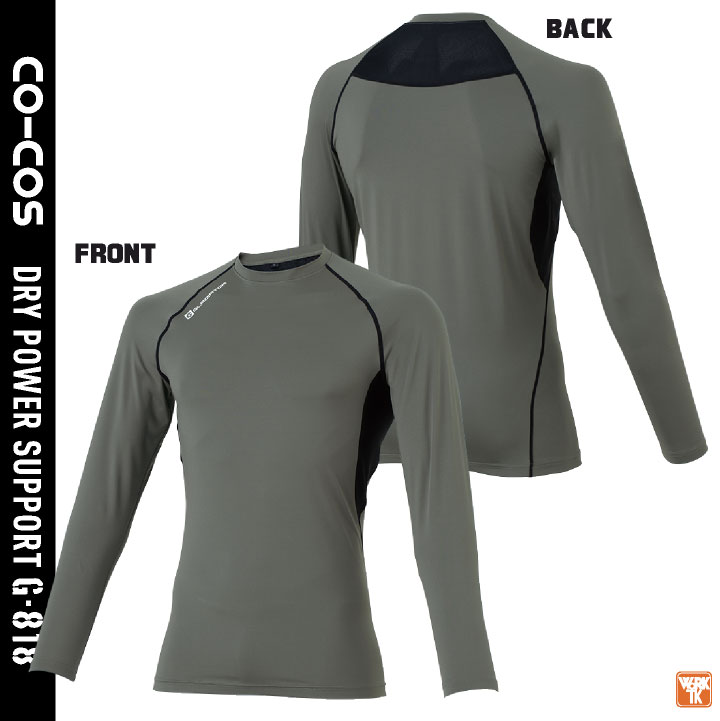 G-818 最強コスパ 人気 おすすめ ニオイクリアでおなじみのコーコス コンプレッション インナー ドライパワーサポート長袖 春夏 工事現場 建設業 農作業 ガーデニング アウトドア 制服