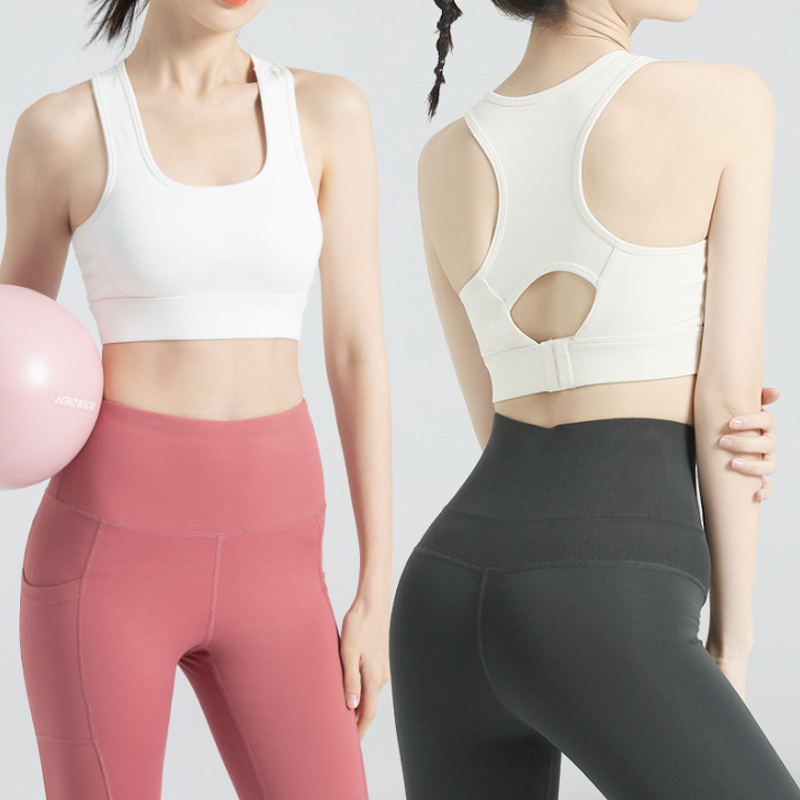 MTWXPKO 無地 スポーツブラ 揺れない 後ろホックタイプ ランニング ヨガ フィットネスブラ 大きいサイズ レディース パッド 後ろホック付き ノンワイヤー